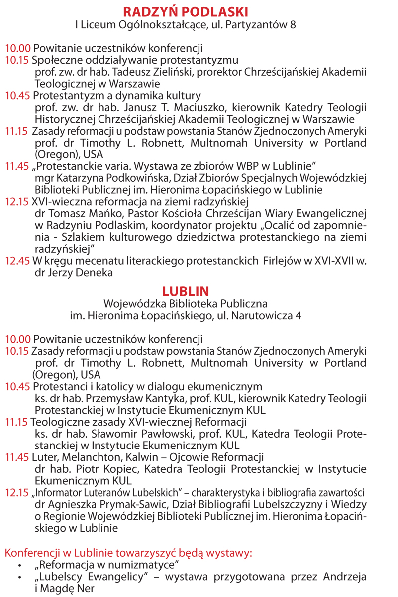 "REFORMACJA I JEJ DZIEDZICTWO NA LUBELSZCZYŹNIE"