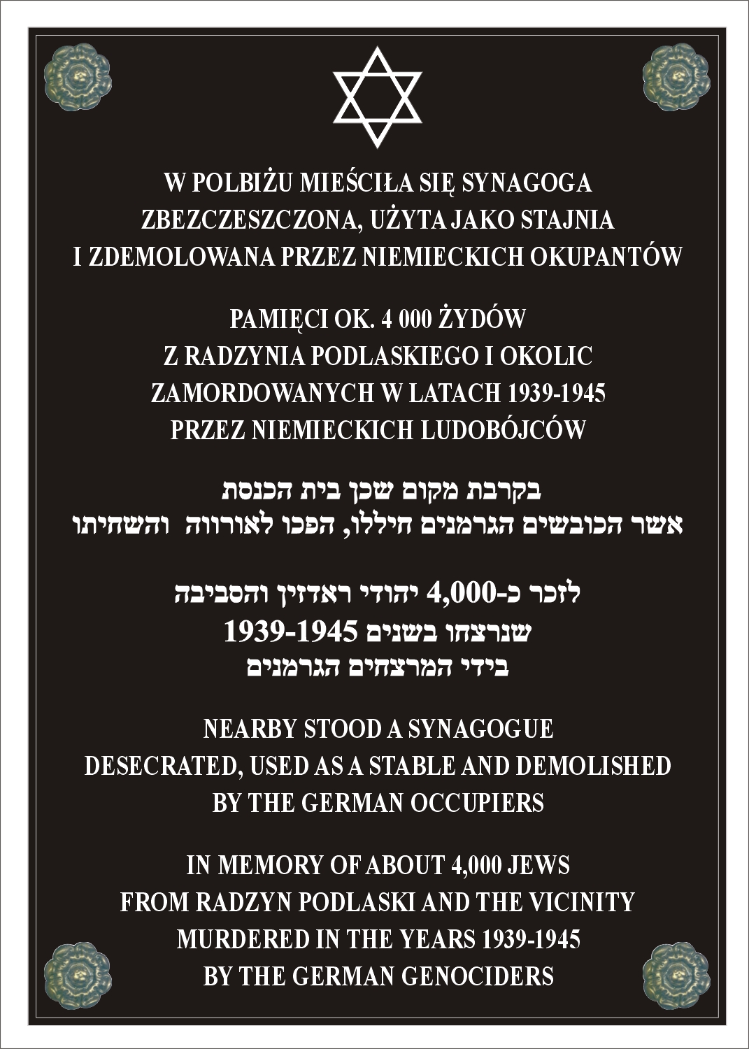 TABLICA PAMIĘCI SPOŁECZNOŚCI ŻYDOWSKIEJ W RADZYNIU PODLASKIM